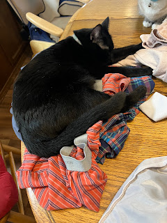 Alex's clean underwear pile of laundry is the best place to lay - especially if we have un-folded them to make it more comfortable....